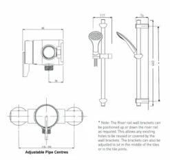 - Supplied with 1.5m shower hose, riser rail, hose retainer and single function handset with rub clean nozzles. Riser brackets can be adjusted to cover existing holes in the wall surface