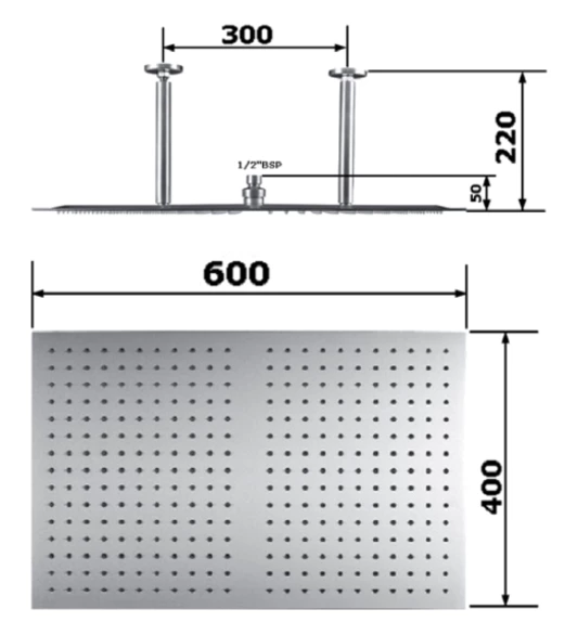 Hudson Reed Ceiling Mounted Shower Head 600X400mm – Head66