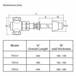 1/2″ push-button flow control for duct mounting with 30 second timed flow complete with extended rod options for extra security and varying wall thicknesses with 15mm compression fittings. Incorporates internal flow adjuster.