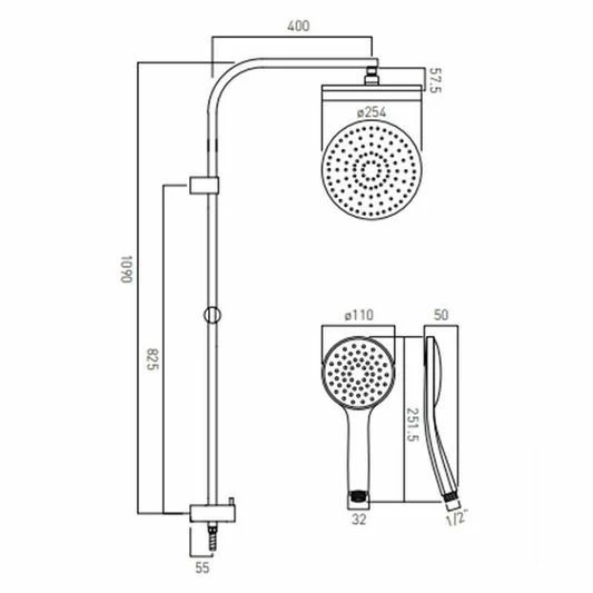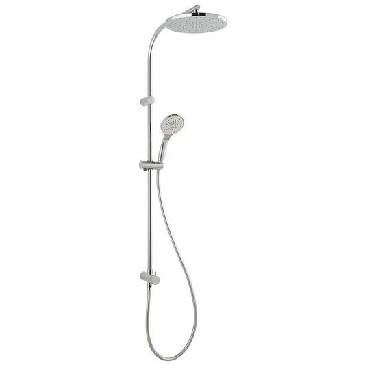 The Vado rigid riser kit with diverter and outlets is finished in an eye catching chrome. This riser kit is installed with a diverter is designed to control 2 outlets and requires a minimum operating pressure of 1.0 bar. This riser kit is supplied with a hand shower and overhead shower. This model can handle high-pressure levels and is designed with two outlets ready for use, this product is a truly versatile unit that is capable of being installed in any compatible setting.